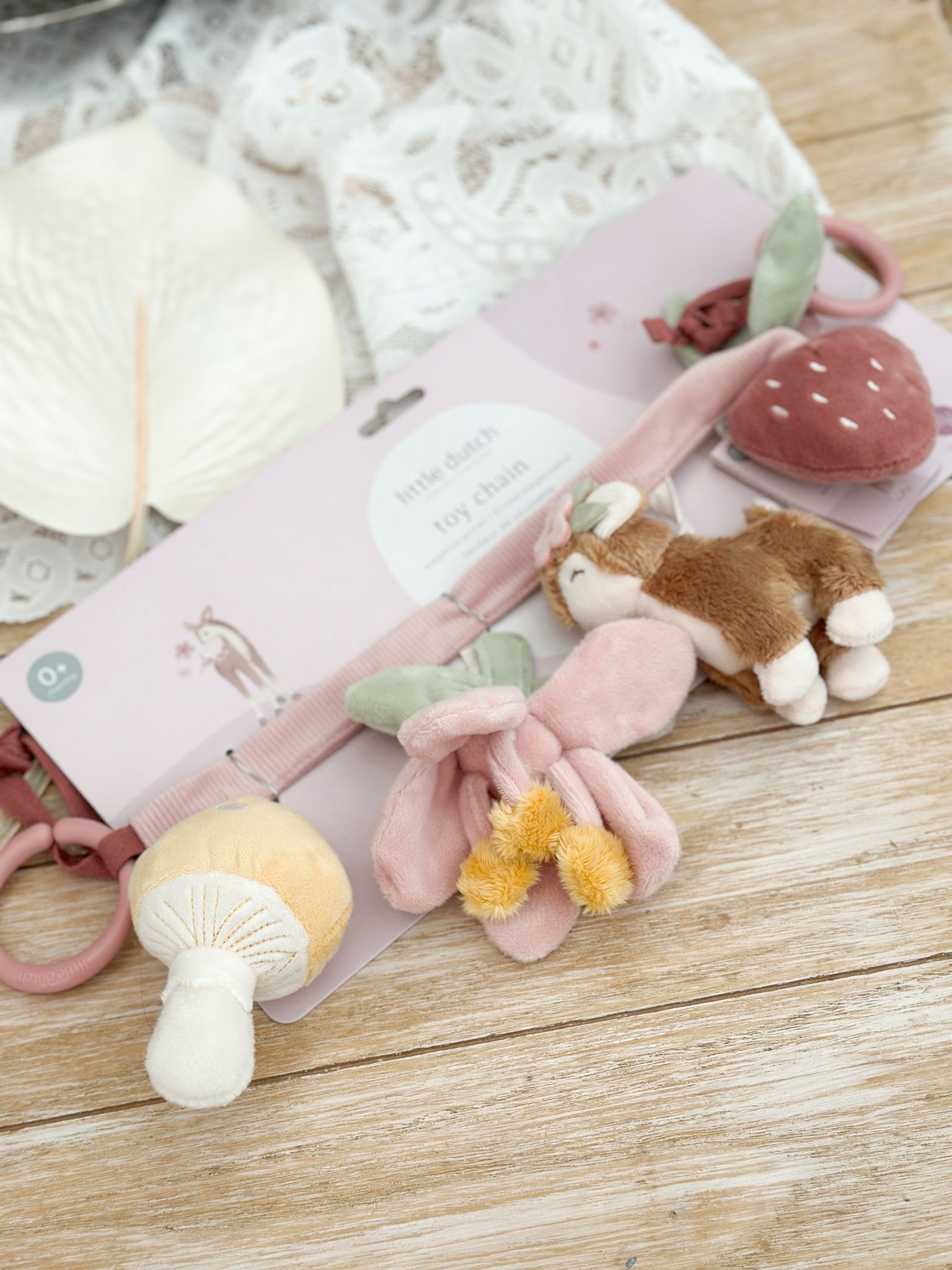 Die Little Dutch Kinderwagenkette Fairy Garden ist der perfekte Begleiter für entspannte Spaziergänge mit deinem Baby. Mit ihren liebevoll gestalteten Anhängern aus der zauberhaften Fairy Garden Kollektion sorgt sie unterwegs für Unterhaltung, Sinnesanreize und spielerische Entdeckung.